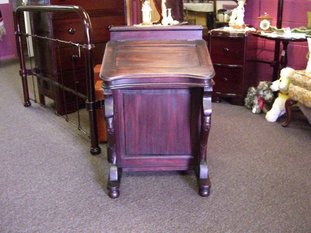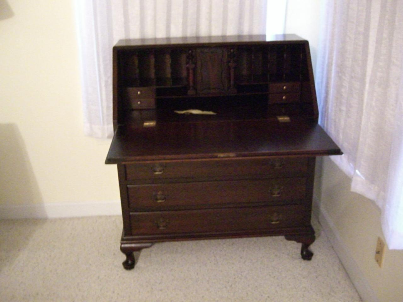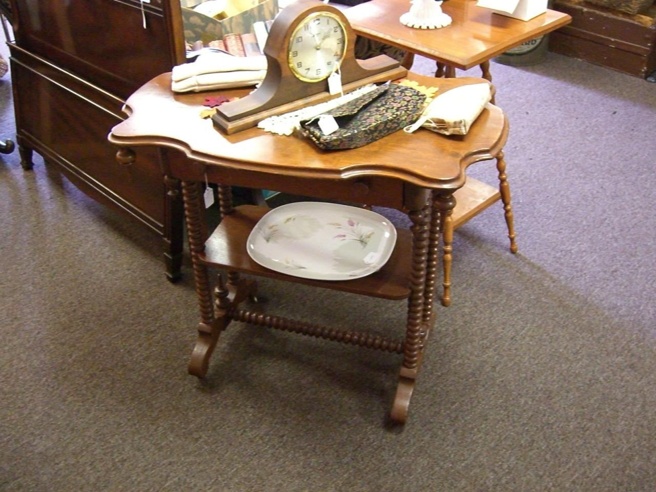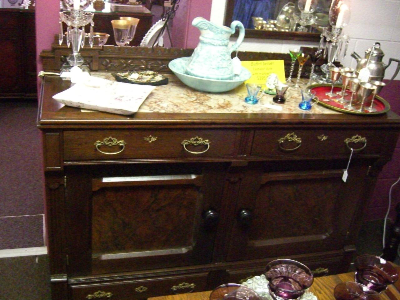 We have a large selection of furniture that includes Dressers, chest of drawer, wardrobes. bachelors chest, dressing table, beds, hall trees, ice boxes, sofa's, chairs, end tables. coffee tables, drum tables, dining room tables and chairs, china cabinets, side boards, servers, desk, book shelves, wash stands, and more!
