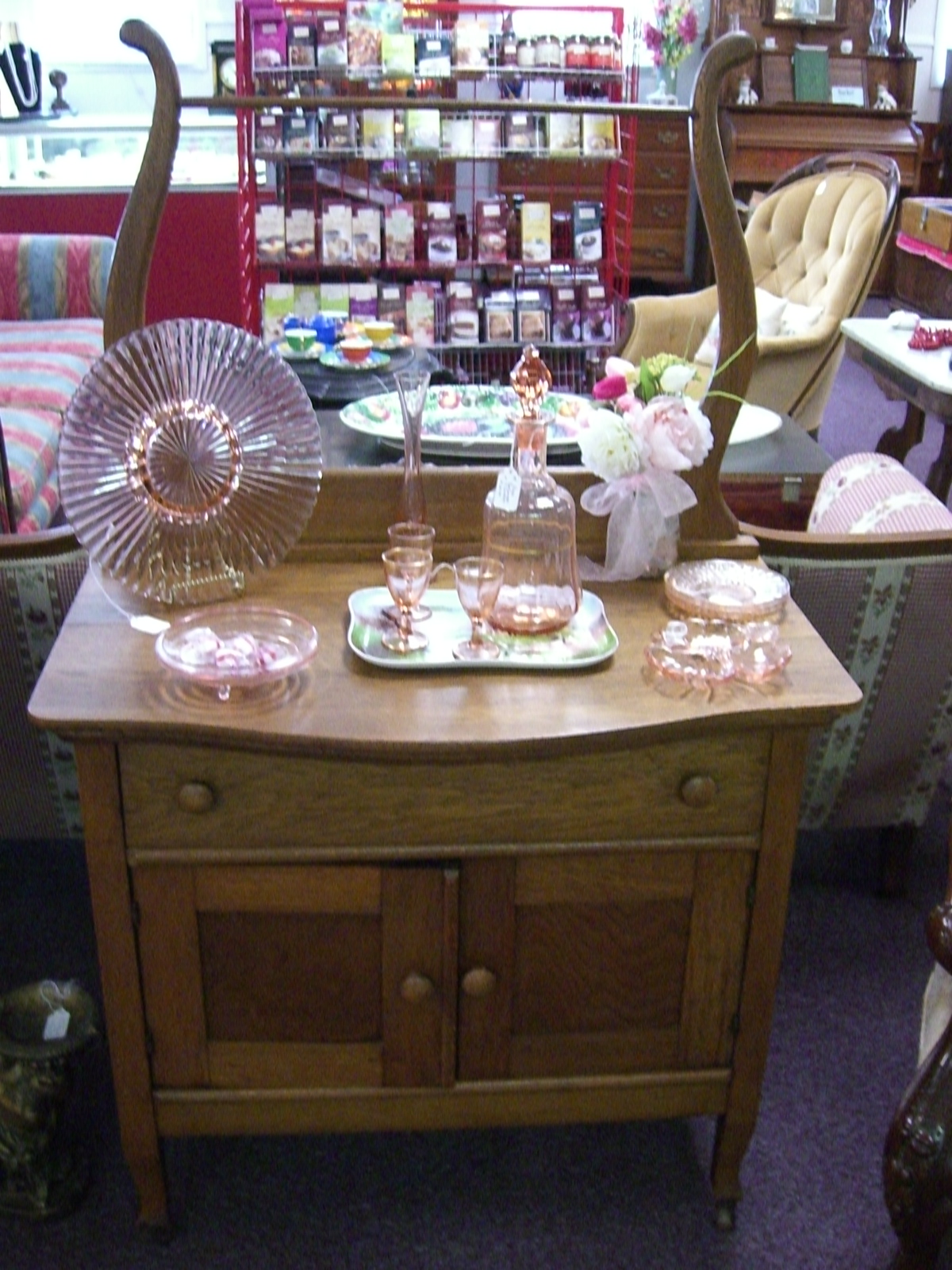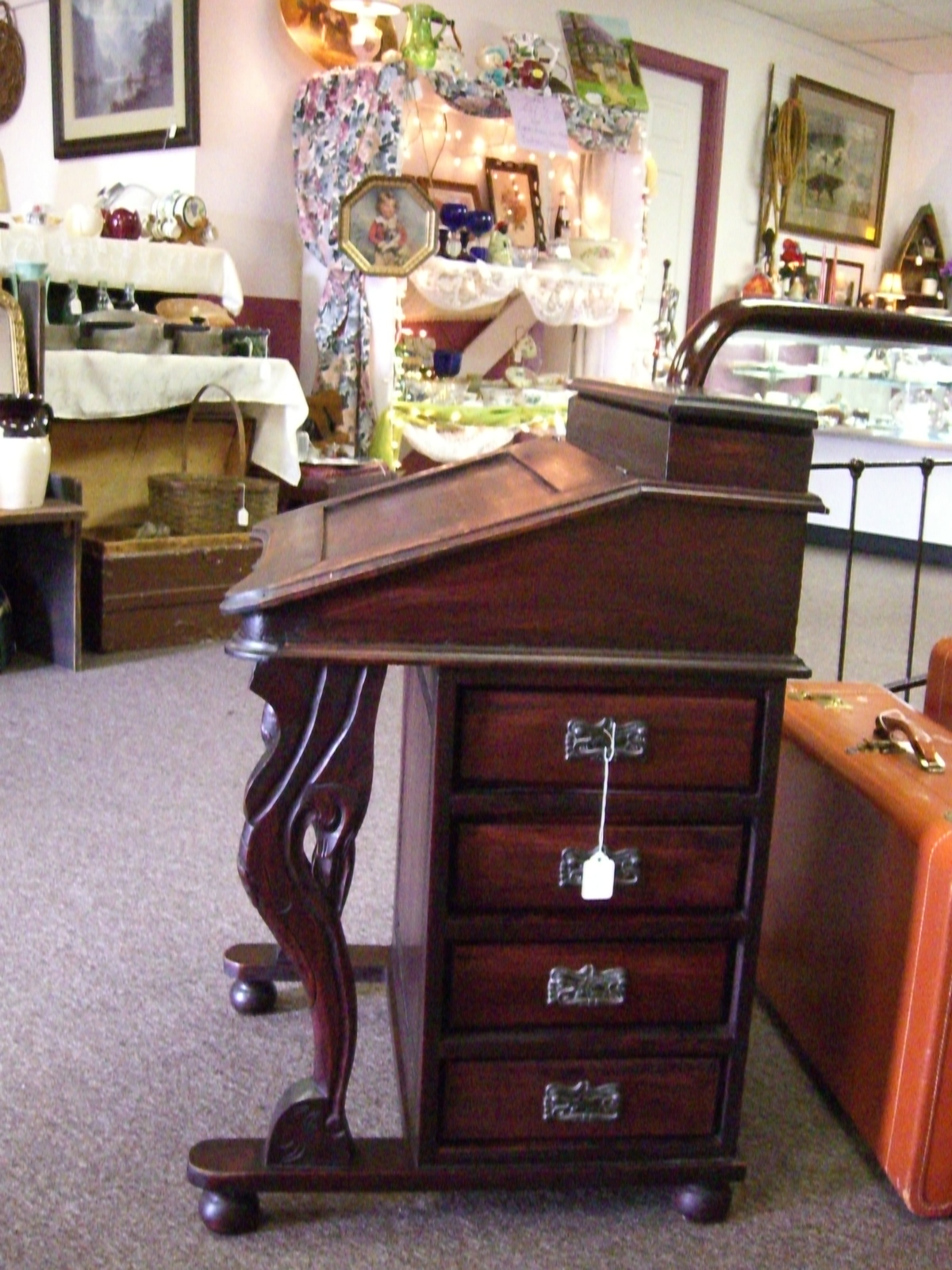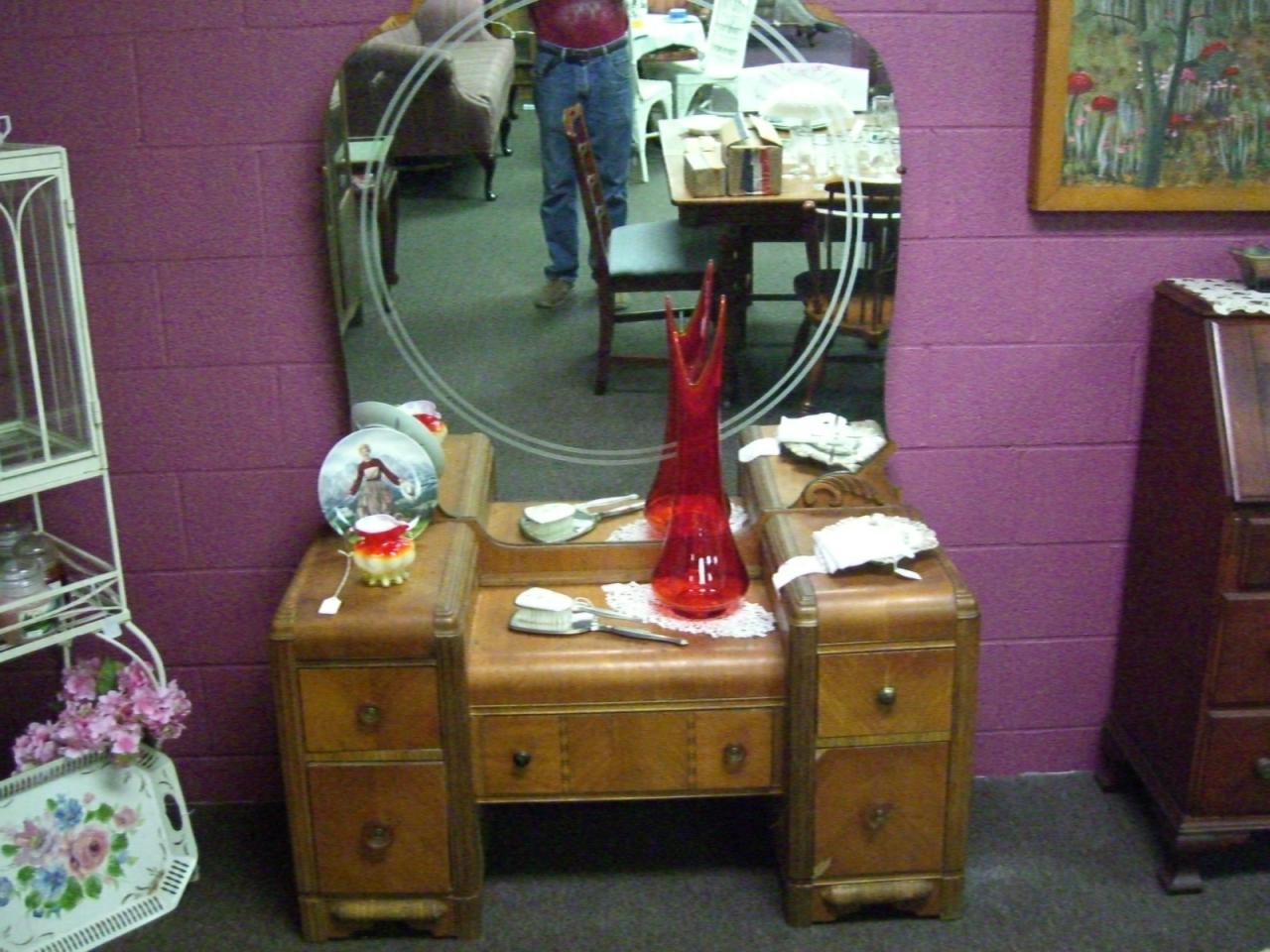 We have a large selection of furniture that includes Dressers, chest of drawer, wardrobes. bachelors chest, dressing table, beds, hall trees, ice boxes, sofa's, chairs, end tables. coffee tables, drum tables, dining room tables and chairs, china cabinets, side boards, servers, desk, book shelves, wash stands, and more!