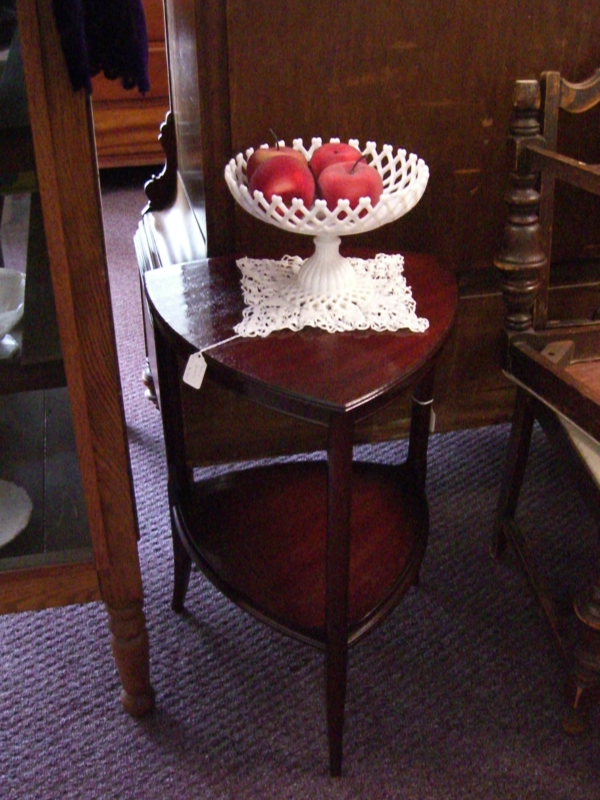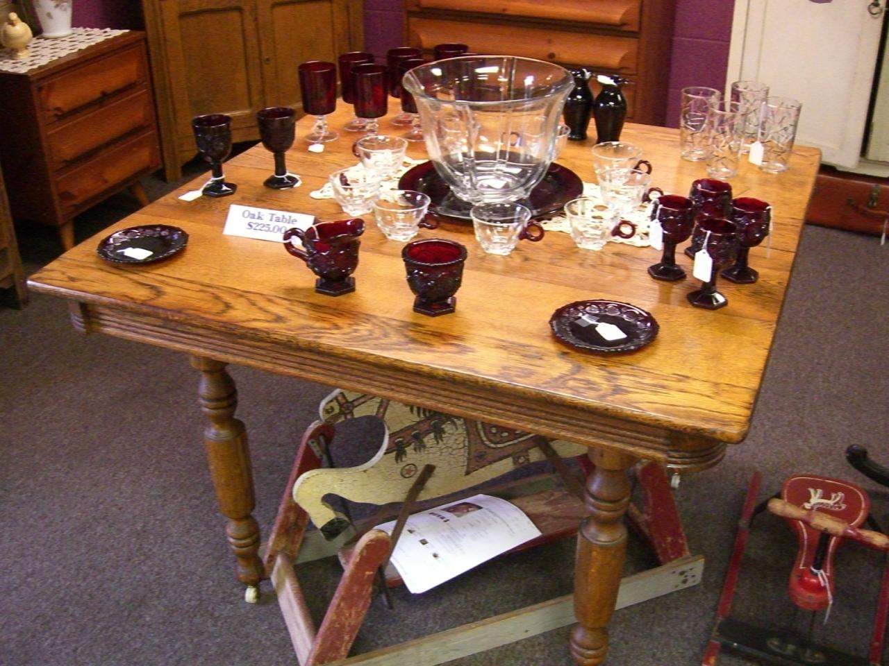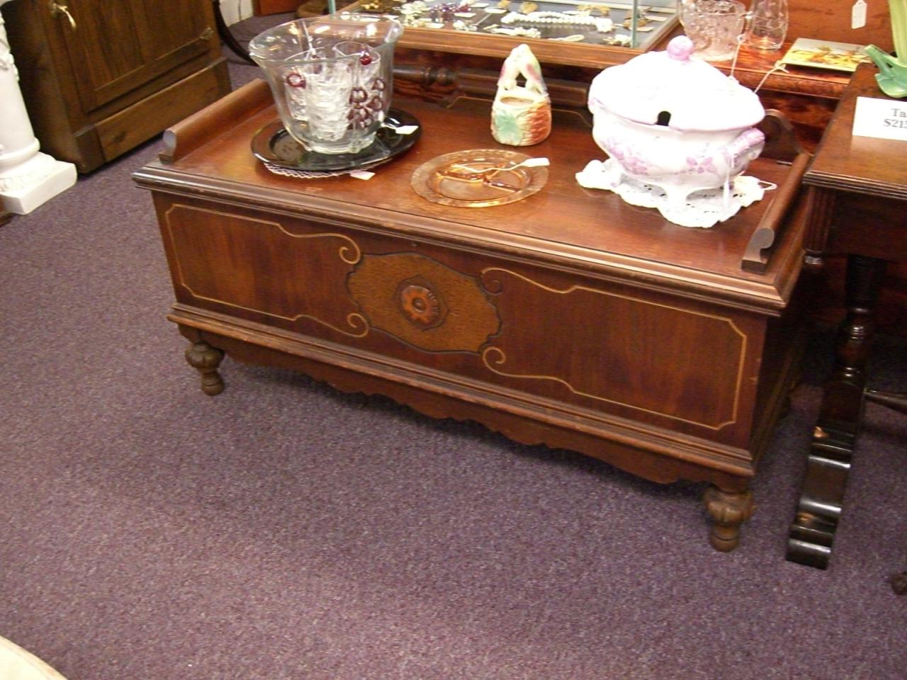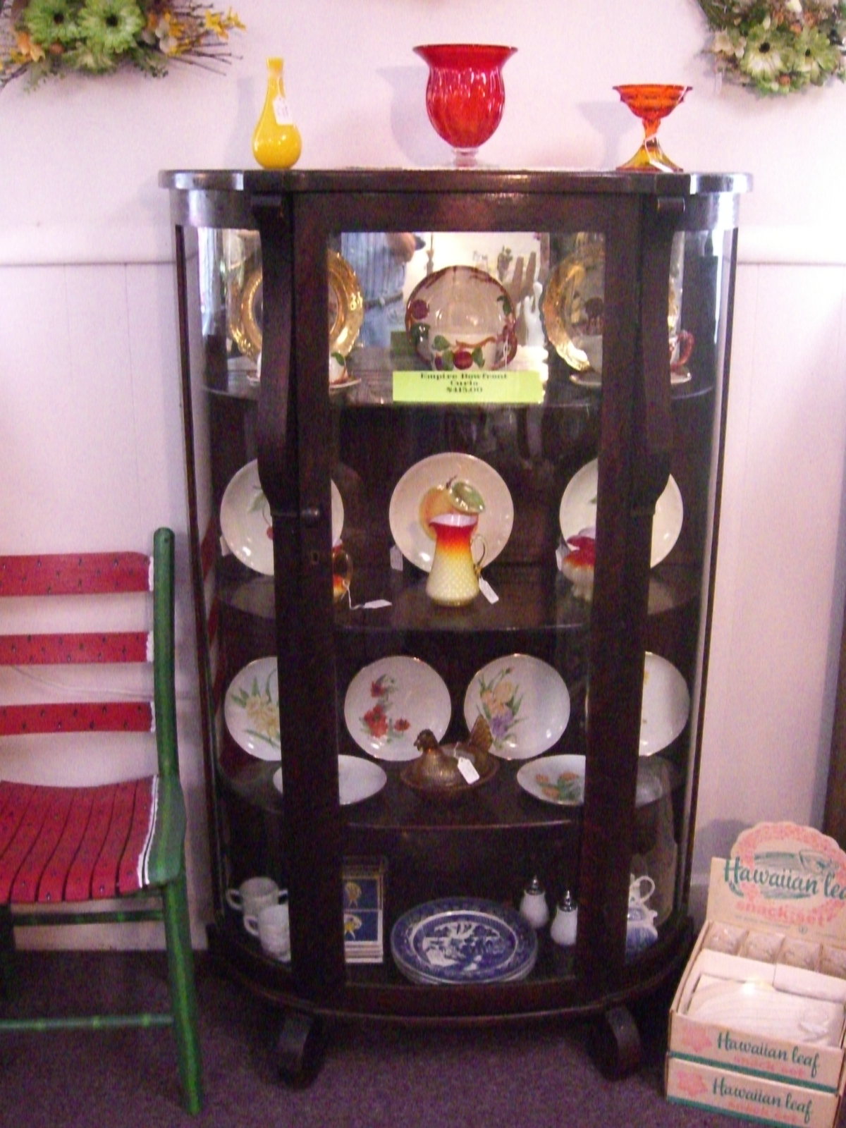 We have a large selection of furniture that includes Dressers, chest of drawer, wardrobes. bachelors chest, dressing table, beds, hall trees, ice boxes, sofa's, chairs, end tables. coffee tables, drum tables, dining room tables and chairs, china cabinets, side boards, servers, desk, book shelves, wash stands, and more!